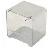 Clear plastic bath, square with metal hooks. Fits in most standard cage doors. For small birds.