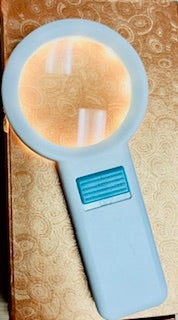 Magnifier with DEL lights. Useful for reading small characters or for details like numbers on bands.
